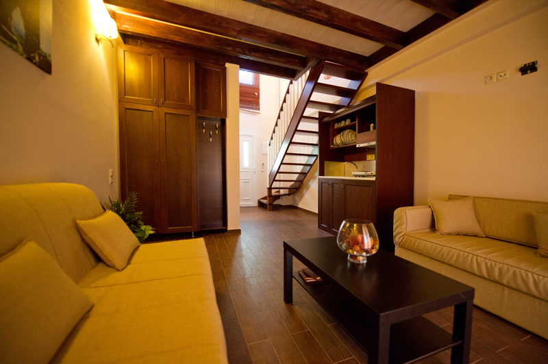 Η “Deluxe Maisonette”(49τ.μ) είναι ένα πολυτελές διαμέρισμα το οποίο μπορεί να φιλοξενήσει έως πέντε άτομα. Το ξύλο κυριαρχεί στην διακόσμηση από το πάτωμα και τα έπιπλα, έως την οροφή!