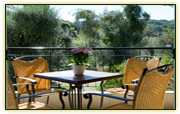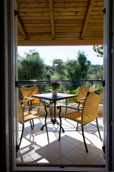 Από το ισόγειο οδηγείστε στη μεγάλη και άνετη βεράντα, με θέα τους προσεγμένους και πανέμορφους κήπους του Byzantio Resort.