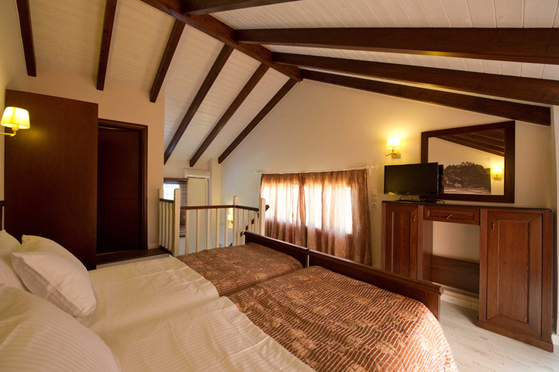 Η “Deluxe Maisonette” αποτελείται από το ισόγειο και τον 1ο όροφο. Στο ισόγειο βρίσκεται το σαλόνι με έναν ή δύο καναπέδες οι οποίοι μετατρέπονται σε ένα μονό ή ένα διπλό άνετο κρεβάτι ο καθένας, η πλήρως εξοπλισμένη κουζίνα και το μπάνιο! Από την πανέμορφη χειροποίητη ξύλινη σκάλα ανεβαίνετε στον 1ο όροφο όπου βρίσκεται το υπνοδωμάτιο με ένα διπλό ή δύο μονά κρεβάτια και το W.C!