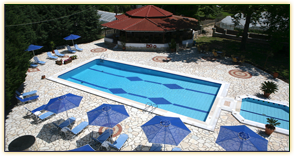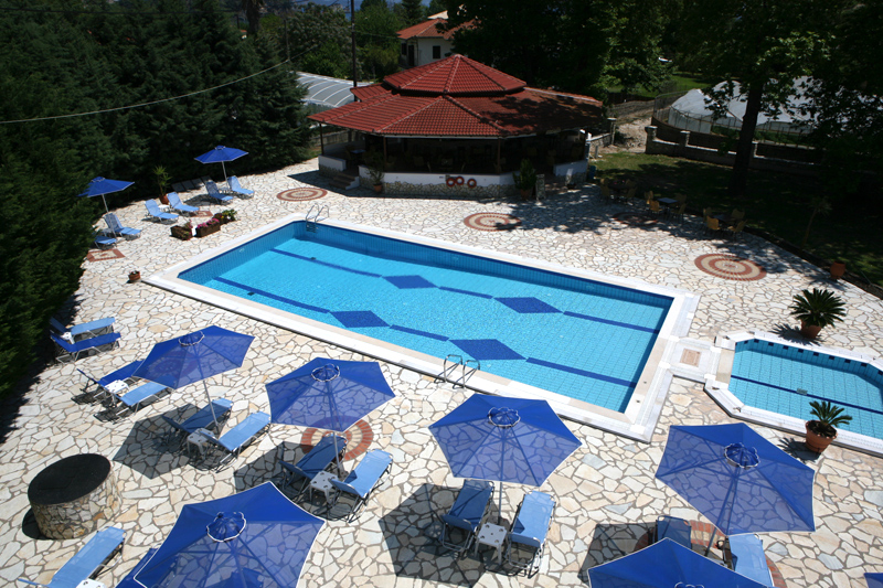 One of the most beautiful areas of our property is the pool area and the bar! The ideal place to relax while hearing the sounds of the small river which flows nearby and the relaxing summertime music! For our junior friends there is a children's pool of 10sq.m. (108sq.ft.) and for adults there is a 100sq.m. (1,076sq.ft)! A fully equipped surrounding area with free sunbeds, sun umbrellas, small tables, showers, and changing rooms.